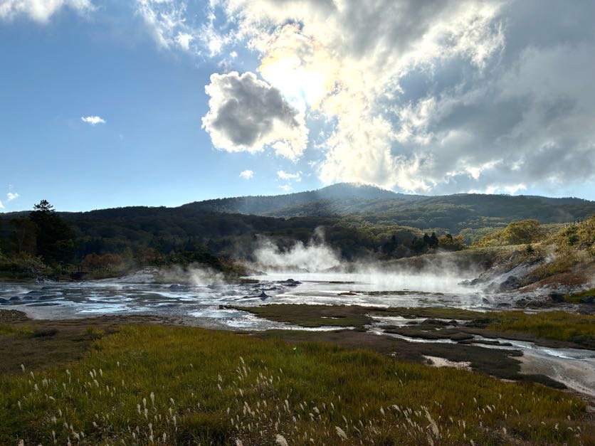 縦走では、白く厚い雲がかかり見えなかった周りの景色が、流れるように風が吹き、雲を晴らして山頂や周りの美しい紅葉の景色を見せてくれたり、秋の実りのきのこたちが山にはたくさんあり、食べるものは自然にあることに気づかせて頂きました。また、玉川温泉のエネルギーは凄まじく、1分間に約8t近くの源泉が湧き出ており、電気もガスもなにも使わずとも常にエネルギーを与えてくれている「自然」という存在に感謝が溢れました。